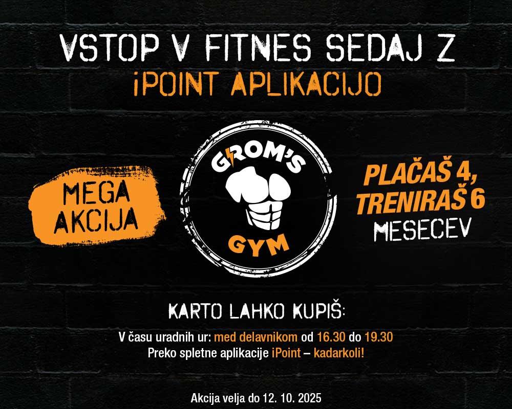V Grom’s Gymu smo uvedli samopostrežni fitnes sistem iPoint, ki omogoča delovanje centra brez osebja. Za vstop v fitnes morate na svoje mobilne telefone naložiti aplikacijo, ki vam bo za vsak vstop in izstop generirala novo kodo.